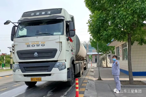 見到陳松松,已是第二天的下午。春暖陽光之下,寬闊廠區之間,五六平米的地磅房面南而座,正對山東三星玉米產業初加工事業部大門。陳松松梳一頭利落的短發,架一副粉紫色全框眼鏡、著一身灰色工作服端坐其中,正忙著為入廠車輛過磅稱重、統計數據,周身的質樸與普通勞動者別無二致。唯有眼角的歲月、滿目的清光,暴露了她心中的堅持、執著和嚴謹。