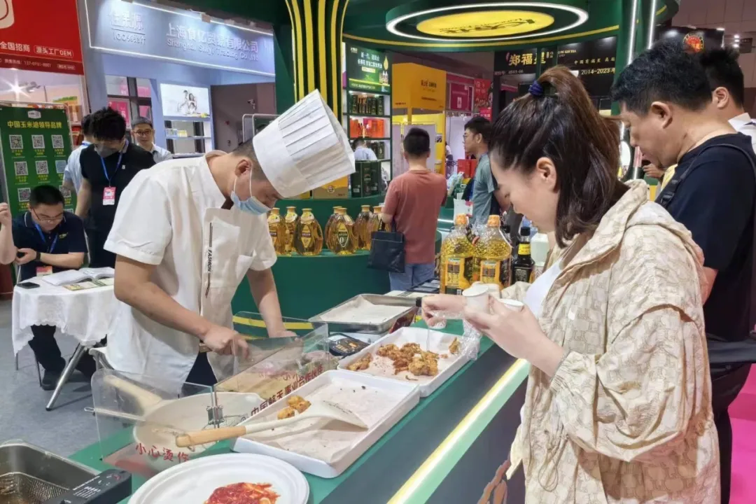 健康好油,歡樂試吃。美食大廚用長壽花糧油產品現場制作的炸酥肉、炸雞、炸豆腐丸子等特色小吃吸引了眾多觀展人員前來品嘗,得到了大家的一致好評。