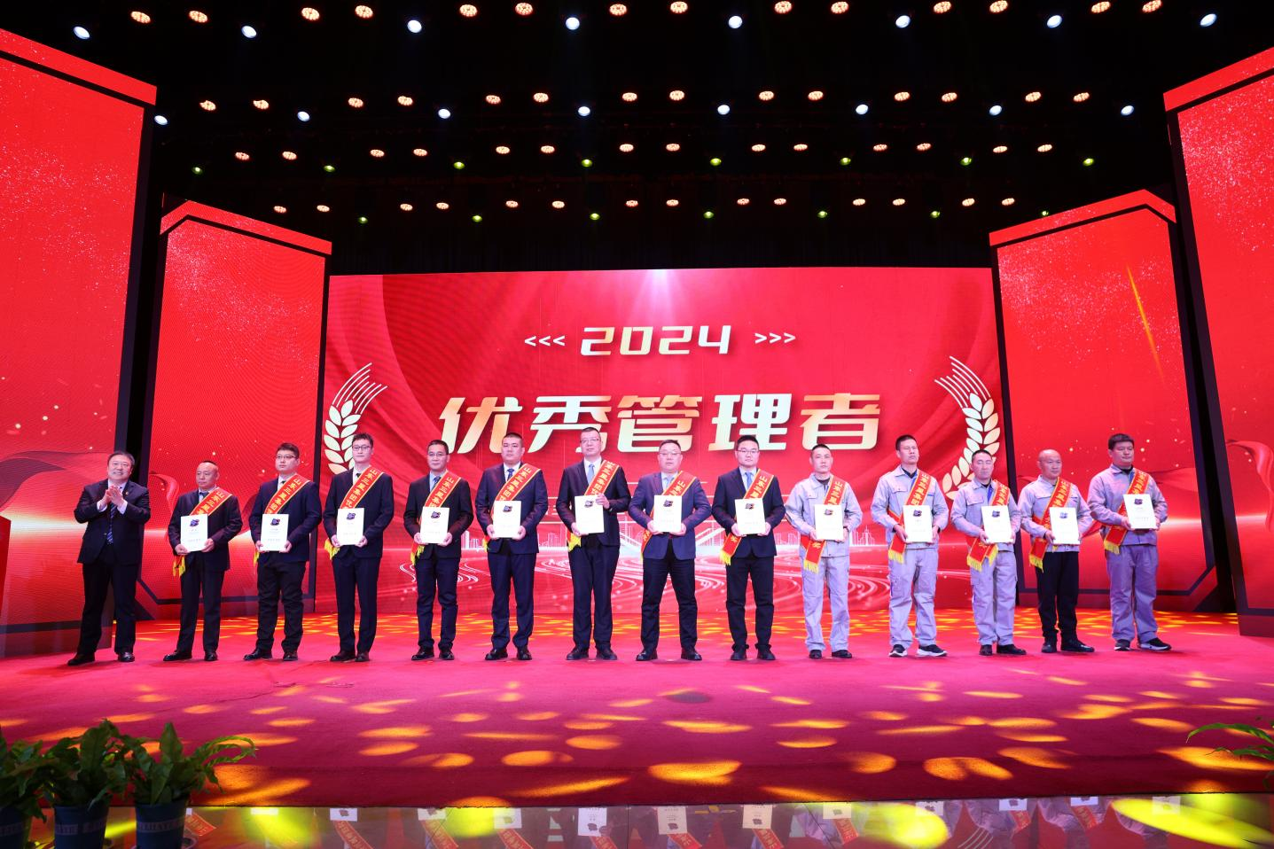 為鼓舞干勁、凝聚力量,表彰在不同領域做出卓越貢獻的人才,集團常務副總經理王明亮宣讀了《關于表彰2024年度先進集體及個人的決定》,對3個安全生產先進單位、2個特殊貢獻單位、6個突出貢獻團隊、2個科技創(chuàng)新先進集體、13個模范班集體(部室)、14名優(yōu)秀管理者、8名銷售標兵、8名優(yōu)秀黨員、115名優(yōu)秀員工及14名優(yōu)秀新員工予以表彰獎勵,激勵他們在未來的工作中再接再厲,勇攀新高峰。