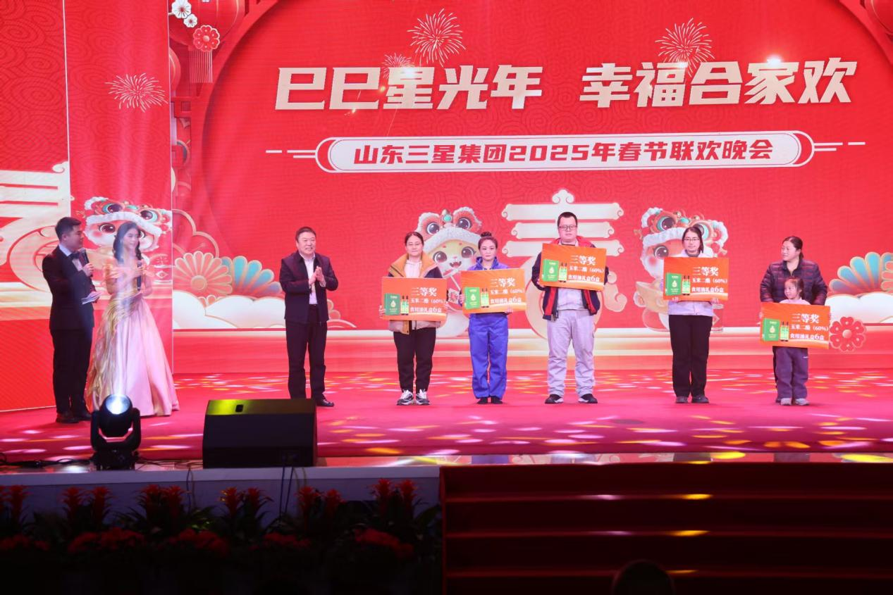 巳巳星光年,幸福合家歡。1月22日,農歷臘月二十三小年夜,2025年山東三星集團春節聯歡晚會在集團會展中心精彩上演。山東三星集團董事會領導,來自集團各部室、各分公司的干部員工及家屬代表700余人歡聚一堂,共度辭舊迎新的美好時光,在濃濃的年味中傳遞著對新年的美好期許。