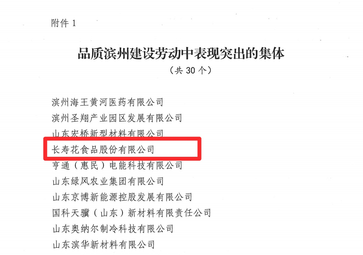 近日,濱州市總工會(huì)發(fā)布了《關(guān)于表揚(yáng)在品質(zhì)濱州建設(shè)勞動(dòng)中表現(xiàn)突出的集體和個(gè)人的通報(bào)》,對(duì)在推動(dòng)“品質(zhì)濱州”建設(shè)中勇挑重?fù)?dān)、創(chuàng)新實(shí)干的先進(jìn)集體和個(gè)人予以通報(bào)表彰。長壽花食品憑借在品質(zhì)濱州建設(shè)中的卓越表現(xiàn)和突出貢獻(xiàn),榮獲“品質(zhì)濱州建設(shè)勞動(dòng)中表現(xiàn)突出的集體”榮譽(yù)表彰。