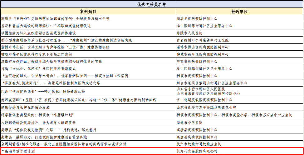 8月2日,第二屆山東省健康促進大會在淄博召開。會上,長壽花食品《二酯油體重管理計劃》案例,憑借其突出的創新性與實效性,榮獲健康促進優秀實踐案例。
