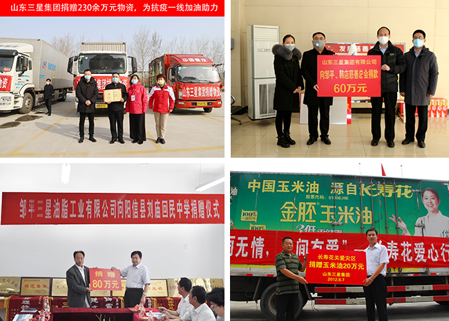 作為根植齊魯大地的“厚道魯商”品牌企業(yè),多年來(lái),山東三星集團(tuán)主動(dòng)承擔(dān)社會(huì)責(zé)任, 熱心公益慈善事業(yè)。疫情捐贈(zèng)、抗洪賑災(zāi)、捐資助學(xué)、扶貧濟(jì)困……,在每一個(gè)危難的時(shí) 刻,在每一處需要幫助的地方,企業(yè)都積極捐款捐物,參與救災(zāi)和各項(xiàng)社會(huì)公益慈善事 業(yè),用實(shí)際行動(dòng)踐行企業(yè)責(zé)任,熱心相助,回報(bào)社會(huì),多次榮獲“最具愛(ài)心企業(yè)”“最具 社會(huì)責(zé)任感集體”及“慈善之星”等榮譽(yù)稱(chēng)號(hào)。此外,山東三星集團(tuán)每年都積極參與“慈 心一日捐”活動(dòng),堅(jiān)持走訪慰問(wèn)因病因急致困的周邊群眾及職工,在企業(yè)內(nèi)部形成了濃厚 的慈善氛圍。